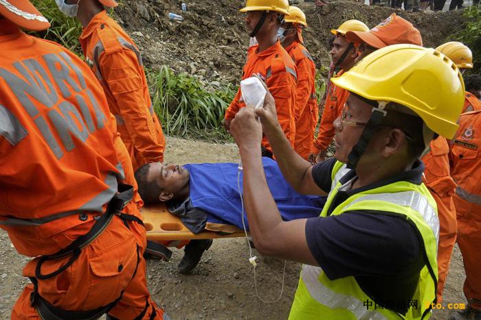 8月23日,在印度米佐拉姆邦首府艾藻尔附近,救援人员转移事故伤者。新华社/法新