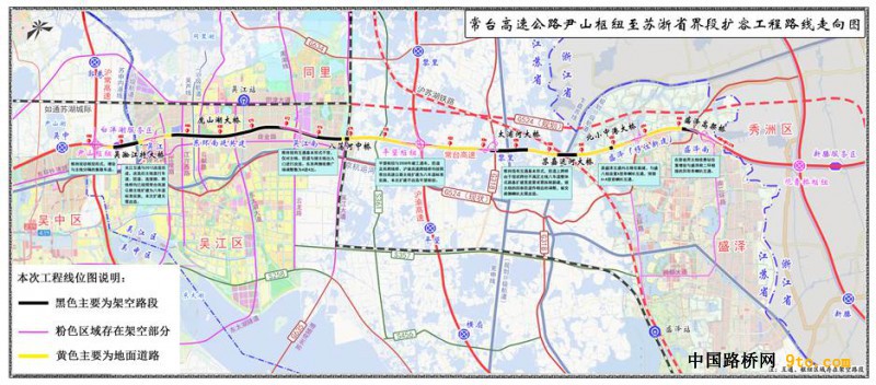常台高速公路尹山枢纽至苏浙省界段扩建工程已列入《苏州市“十四五”综合交通运输体系发展规划》,该路段是构建苏州市综合立体交通网的重要组成部分。本项目是对现有高速公路进行改扩建,路线自北向南,北起绕城高速尹山枢纽,向南沿老路采用两侧拼宽方式建设至苏浙省界。路段路线长38.7公里,其中吴中段北起尹山枢纽,南至吴淞江,长约2.8km,吴江段北起吴淞江,南至苏浙省界,长约35.9km。